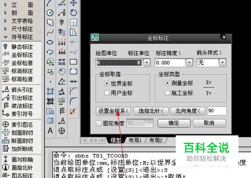 打开坐标系设置对话框 ①单击坐标标注按钮 ②输入S,回车