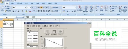 一、添加一条斜线,分隔两个文字,文字直接输入 选择表格,右击--设置单元格格式--边框,选择斜线 需要调整文字大小和间距,以及表格的大小