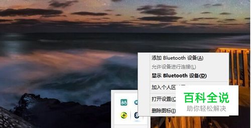 首先,请确保你的电脑上有蓝牙适配器同时也正确安装了驱动程序软件,如果以上的配置正确的话,在系统的任务栏中会有蓝牙的图标,如下图所示,