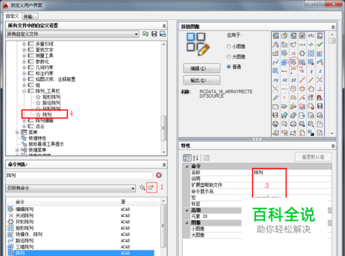 在红框3命令名称中输入阵列,在宏命令中输入arrayclassic