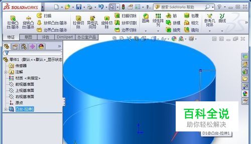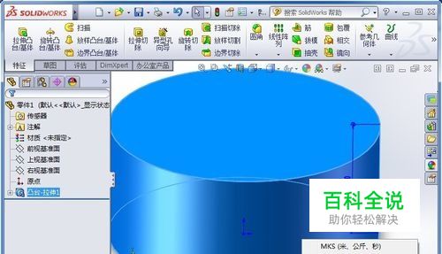 这里介绍一下修改SolidWorks的单位系统的方法。下图所示模型采用的单位是mm,图中尺寸为10mm,通过修改单位系统,将会看到数值的改变。