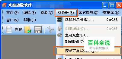 选择菜单“刻录器(R)”-“擦除可重写光盘(W)...”。
