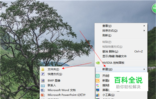 轻轻点击鼠标右键,弹出功能对话框。讲鼠标移到(新建)选项,弹出创建选项,点击文件夹,进行创建。