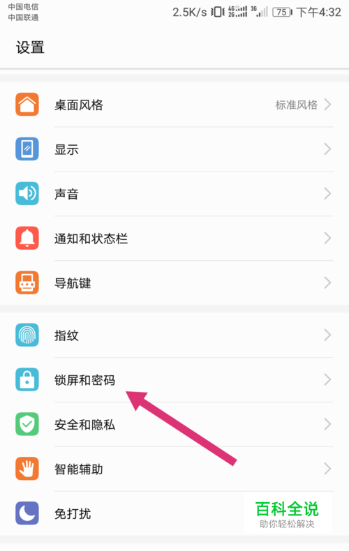 打开设置界面后找到指纹下面的锁屏和密码,然后进行点击