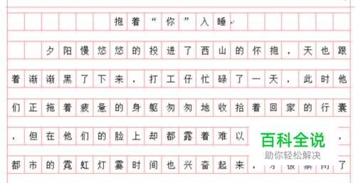 5、这个时候整篇文档文字就变成了方格式格式,所有的文字都出现在方格内,显得很美观整齐。