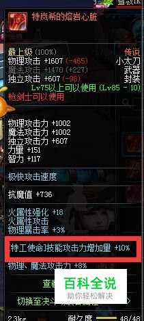 首选: 85级传说小太刀: 特岚希的熔岩心脏,特工使命技能攻击力增加量+10%,终极换装武器。