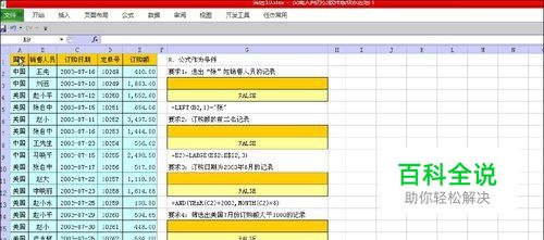条件二、筛选订购额为前三名记录 步骤1:在条件区域G8中,写入公式 =E2>=LARGE(E$2:E$22,3);注意G7留空不写。 步骤2:选定数据源区域A2:E22。数据/排序和筛选/高级,出现对话框 步骤3:对话框中“列表区域”的值,就是前面选定的范围;在“条件区域”的值中,点一下,再选定条件区域(本例是G7:G8)。 步骤4:在对话框中“方式”选项下,勾选“将结果复制到其他位置”;然后在“复制到”后面输入要存放结果的第一个单元格。(本例选择I7) 步骤5:点击“确定”即可完成,结果如图。