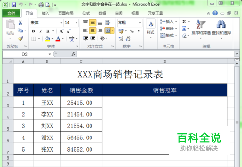 这样就求出了销售金额最大的数值,而这个数值是一个数字格式,现需要在这个数值前添加一段文字。