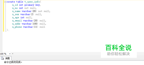 第一步,创建数据库表t_user_info,利用创建表SQL语句create table,如下图所示:
