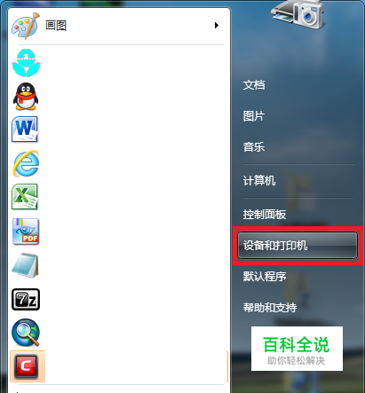 打开开始菜单中的“设备和打印机”。