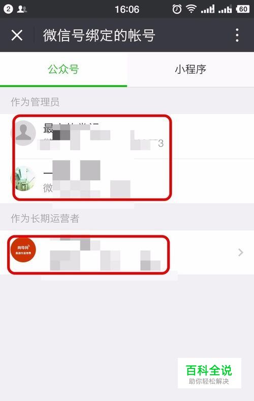 这时我们会看到微信号所绑定的公众号啦!也可以切换看微信号绑定的小程序。