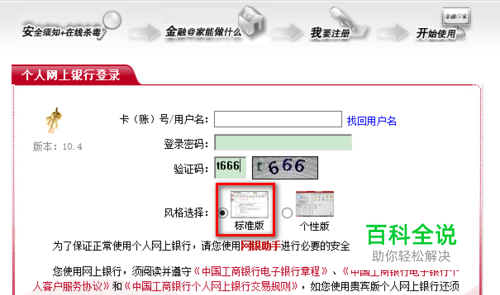 在登陆页面填上卡号、密码以及验证码。注意,在登陆时,一定要选择“标准版”风格。