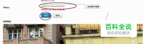 将pano值粘贴在对应框里,点击保存,即可在下方看到所定位地点的街景