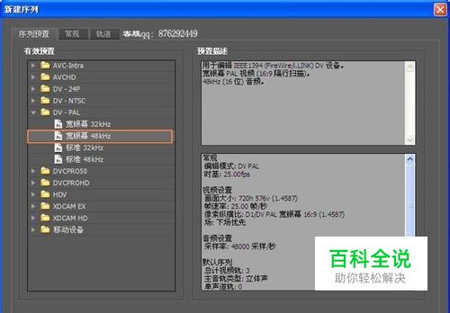 运行软件,点击新建项目,点击位置后面的浏览选择文件按的储存位置,在名称处为工程文件命名,如:视频换背景音乐,再确定。进入到了新建序列窗口,有效预置选择 DV—PAL宽银幕48KHz,序列名称处输入名字,如:视频换背景音乐,确定进入软件的操作主界面。