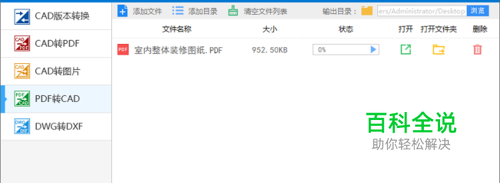 运行CAD转换器,在左侧的文件转换的类型当中找到我们要转换的文件类型:CAD转PDF