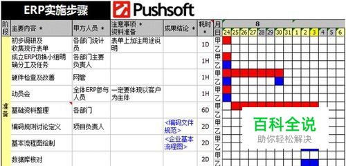 建立实施策略 建立实施策略,主要从合作配合角度上,来计划项目的范围、确定项目的目标。这一阶段的工作,包括建立由公司主要领导为首的项目实施领导小组和各部门有关人员参加的项目实施小组,并开始对员工进行初步的业务管理观念和方法培训,制定出企业实施应用管理的策略和目标。 快 + 技术层面 这种实施方式主要是为紧迫的技术问题或对不能满足需要的现有系统进行快速减压。这种方式可能费用最低,但不会直接增加商业价值,仅能将技术屏障转移到经营的有效性上去。除非企业遇到的技术问题必须在最短的时间内解决,否则也不提倡采用这种实施方式,因为,系统到位后再进行优化一般要付出更大的代价。 快 + 战略层面 这种形成快速优势的实施方式,这要求企业的管理非常优秀,企业的变革能力非常出色,企业的信息技术水平和应用信息技术的能力非常高。否则这种实施方式将可能使预期目标大打折扣。当然,可以通过这种方式求得竞争差异,将重点放在特定的业务流程或作为解决企业最薄弱环节的手段(如在供应链管理这个局部)将大多数余下的业务流程依然按照“快+技术层面”来解决。 慢 + 战略层面 这种实施方式可能会较好地实现追求商业价值的目标。这种方式多被一些特大型企业或企业集团采用,特别是一些想通过实施ERP完成管理模式转型的企业。这时,慢的问题不是ERP软件系统实施引起的,大部分时间是要用来完成业务流程的大范围改动、修正员工行为、整理企业管理的各类基础数据等工作的。当然,这种实施策略带来的一个最直接的问题是在一段时间内可能见不到预期效果。 采用什么样的ERP实施策略和方法取决于企业实施ERP的目标,策略和方式方法仅是达到目标的具体手段。至于企业是将解决技术层面问题放在首位,还是将战略层面问题放在首位,异或是综合考虑都取决于实施ERP的目的,也就是说,ERP是想分阶段见到效果还是直达目的,将取决于采用的实施策略。 从总体情况看,坚持“全面规划、总体设计,试点先行、分步实施,效益驱动、逐步推广,持续改进,不断提高”的实施原则对做好ERP系统实施工作有一定的参考价值。对于具体的实施策略,Pushsoft将根据客户的管理基础与人员素质情况与客户协商确定。 具体的策略确定后,Pushsoft将根据客户的实际情况,提供《ERP实施计划甘特图》,以方便客户更好的理解与配合ERP实施,如下图所示: