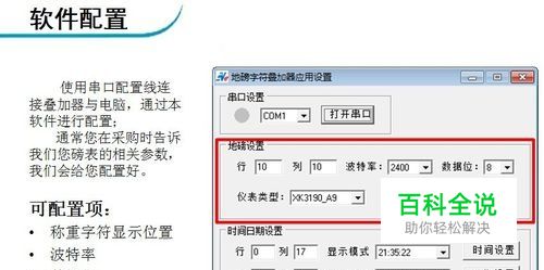 4、软件配置: 使用串口配置线连接叠加器与电脑,通过光盘软件进行配置。打开串口,选择相应的地磅仪表型号和波特率,对时间日期进行设置。