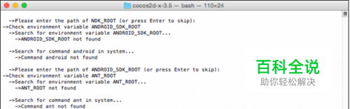 下载Cocos2d-x的最新版本(www.cocos2d-x.org/download);本教程使用3.5版本。把文件下载下来,放到你想把Cocos2d-x安装到的地方,例如你的主目录,然后解压。打开Terminal和CD,进入你刚刚解压的文件夹。例如,如果你把项目放到了你的主目录里,那就运行如下命令:cd ~/cocos2d-x-3.5/现在,运行接下来这个命令:python setup.py这里配置了必要的shell环境变量。若系统出现提示,要求配置像 NDK_ROOT, ANDROID_SDK_ROOT和ANT_ROOT这些Android特有的变量,你只需按三次回车完成设置就好了。注意:Cocos2d需要你在电脑上安装Python 2.7以上的版本。如果你不清楚目前电脑的Python版本,可以在命令行中输入python,则版本信息就会被显示出来(然后按Ctrl-D关闭)。如果你安装了一个老版本的Python,请在python.com下载安装最新版本。如下图所示,脚本文件提示执行另一条命令来完成安装: