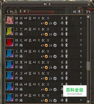 购买各级别的神器配方:当有了“神器碎片”之后,即可找各个城市中的“采集合成秘商”这个NPC处购买到所有的神器制作配方,只要有符合对应级别的生活技能即可学习。