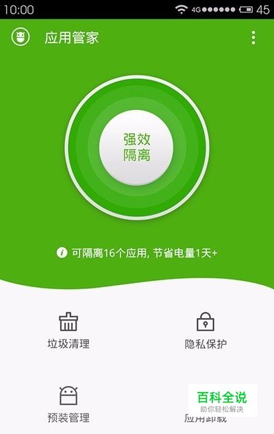 推送服务泛滥变成现在Android耗电的最大由头。这时“应用管家(安狗狗)”就有了新的意义,从开始的缓解卡顿变成现在的省电,把后台一清,就一了百了。 应用管家可以将隔离名单中的 App 强制关闭掉,不让其进行无聊的推送,这样在运行程序之后,可以有效的释放系统内存,并降低手机的唤醒概率,达到省电的目的。
