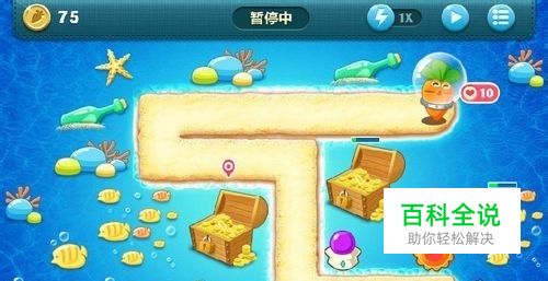 这时又获得三个新炮塔,不需升级,以后是要卖掉的。指挥两个便便合 力攻击上方的瓶子。