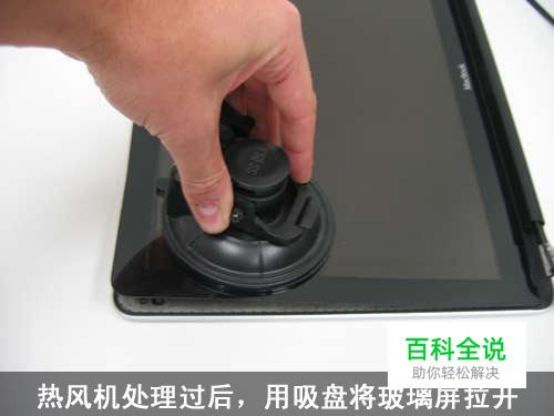 先用热风枪软化双面的粘合带,注意要把热风枪调在短音段,过热的话会损伤LCD。粘合带软化之后,用吸盘把玻璃拔起来。如果加热和用力得当,你会看到玻璃屏幕和剩余部分之间的小空隙。把信用卡插进空隙来回滑动来破坏粘合带。沿着整个玻璃屏幕边缘重复上面的动作。遇到阻碍就上热风枪加热。拿下玻璃屏幕之后,把它放在干净的地方。