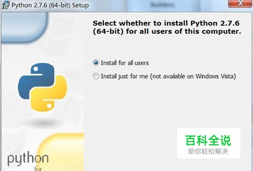 下载并安装python。本文作者使用的是Windows 7 x86_64位,使用python2.7.6版本,默认安装到C:\python27\。