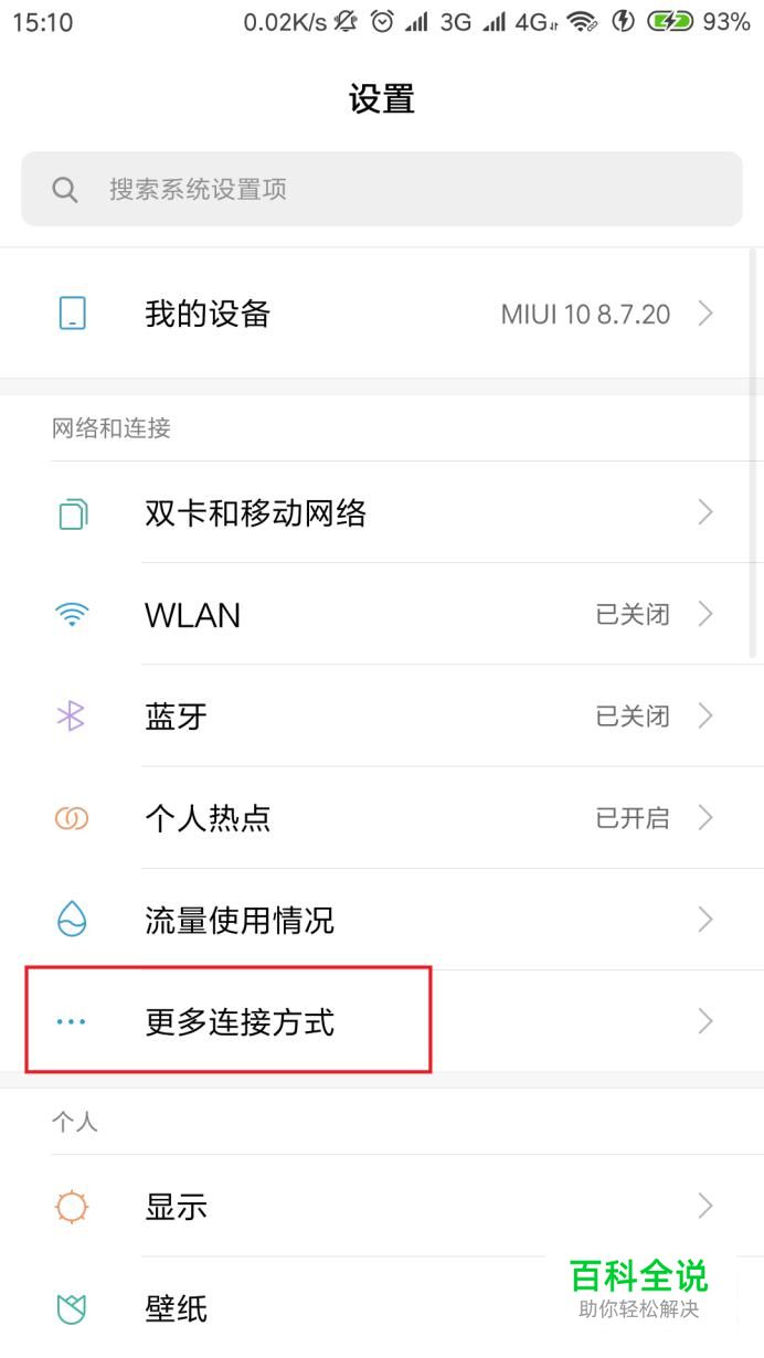 首先,先确保自己的小米手机已经开通了公交卡功能,然后打开设置应用界面,点击页面中的“更多连接方式”设置项。