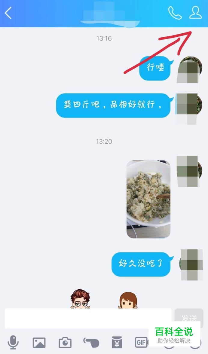 打开想要查找聊天记录的扣扣聊天界面,点击右上角的小人,如下图所示。