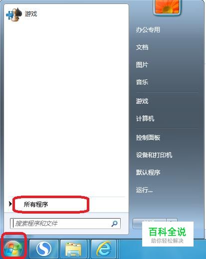首先,我们点击开始菜单,点击“所有程序”。