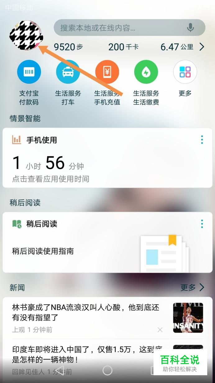 首先在手机屏幕首界面往右拉,出现自己的账号信息,然后点击头像,如下图。