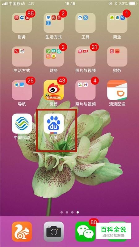 首先在我们的手机桌面上找到百度并点击它,如下图所示。