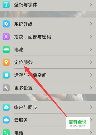 打开手机,找到手机设置,找到定位服务,如图所示。