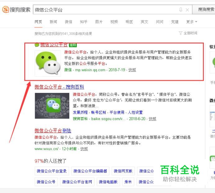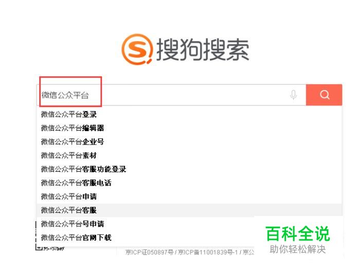 打开搜狗浏览器,输入“微信公众平台”,点击搜索,进入官网。