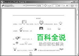 转换完成后会在指定的目录下生成一个Flash文件,打开就可以看见效果了,不错吧,文档的格式一点都没有变吧,而且还可以点击右上角的打印按钮来直接打开里面的内容呢,如图2所示。 图2 最终效果图
