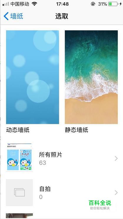进入到墙纸页面后点击上方的选取新的墙纸。