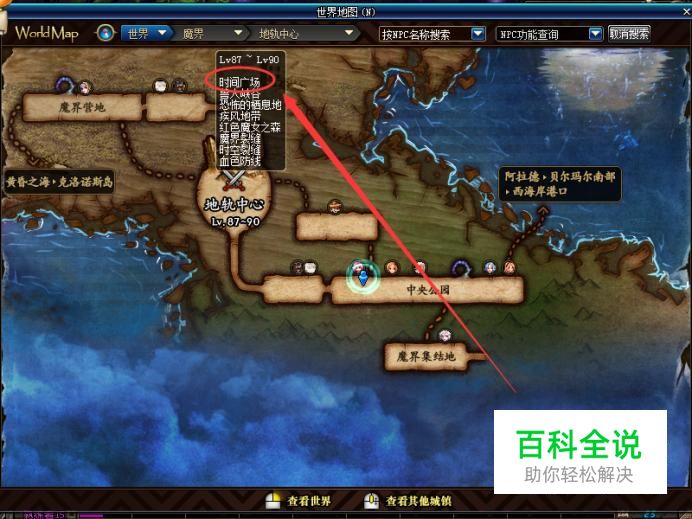 我们登录游戏,首先我们需要知道时间广场在哪里,它位于魔界的地轨中心处。