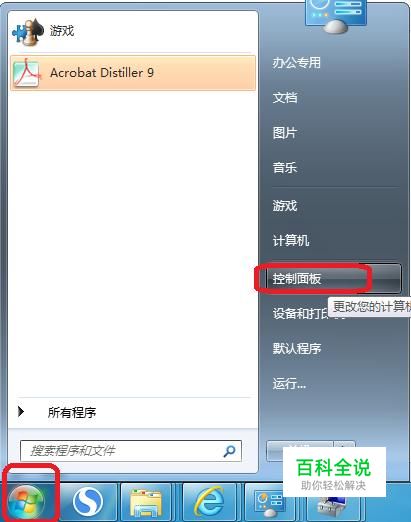 首先,我们点击开始菜单,然后点击“控制面板”。