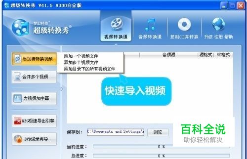 将待转换的视频导入软件中 《超级转换 秀》对各种格式的兼容性非常好,我们可通过点击左上角的“添加待转换视频”按钮,将avi、flv、mkv、mts、ts、mp4、rmvb等各种格式的视频快速导入。