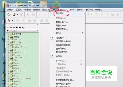 打开pl/sql界面,点击菜单栏上的工具,在下拉菜单中选择首选项