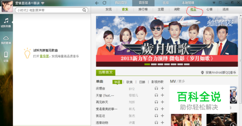下面就让我来告诉你怎么找到QQ音乐的随便听听(猜你喜欢)选项!(最新版QQ音乐里面的随便听听已经改名为猜你喜欢)注意看图片我用红圈圈起来的地方!