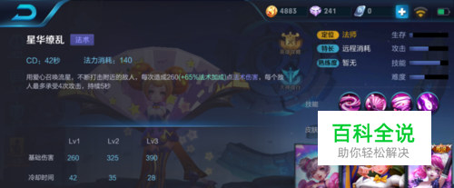 星华缭乱法术,用爱心召唤流星,不断打击附近的敌人,每次造成260(+65%法术加成)点法术伤害,最多承受4次攻击,持续5秒。