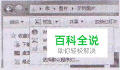 4)菜单栏:该元素默认是隐藏的,通过设置可只显示一次,或永远显示。菜单栏中列出了与文件和文件夹操作有关的命令,不过这些命令现在已经可以通过其他界面元素更简便地实现,因此默认被隐藏起来。如果希望只显示该元素一次,可以直接按下键盘上的Alt键;如果希望将其再次隐藏,只需要单击资源管理器窗口中其他任何一个界面元素即可。如果希望一直显示该元素,可以单击导航按钮下方的“组织”按钮,在弹出的菜单中选择“布局”—“菜单栏”菜单项。 (5)智能工具栏:该元素默认是显示的,无法隐藏。该工具栏可自动感知当前位置的内容,并提供最贴切的操作。例如,如果当前文件夹中保存了大量图形文件,那么该工具栏上就会显示“预览”、“放映幻灯片”,以及“打印”等选项如图2所示。如果当前文件夹中保存了很多文件夹,则会提供“打开”、“共享”等选项。因为智能工具栏可以自动感知内容,并提供最贴切的搮作,因此与文件和文件夹有关的大部分操作,都可通过该工具栏实现,不再需要传统的菜单栏。 (6)显示方式切换开关:该元素默认是显示的,无法隐藏在这里列出的3个按钮,分别可控制当前文件夹使用的视图模式如图3所示。显示或隐藏预览窗格以及打开帮助。