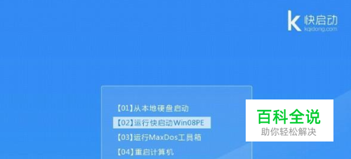 将准备好的u盘启动盘插在电脑usb接口上,然后重启电脑,在出现开机画面时通过u盘启动快捷键进入到快启动的主菜单界面后,用键盘上的上下键将光标移至“【02】运行快启动Win08PE”并回车确定,如下图所示: