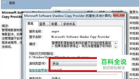 解决方法:首先打开开始菜单中的运行对话框,并输入services,回车打开服务管理界面;接着找到并双击“Microsoft Software Shadow Copy Provider”服务,在弹出来的属性界面中,将启动类型设置开启就可以了。