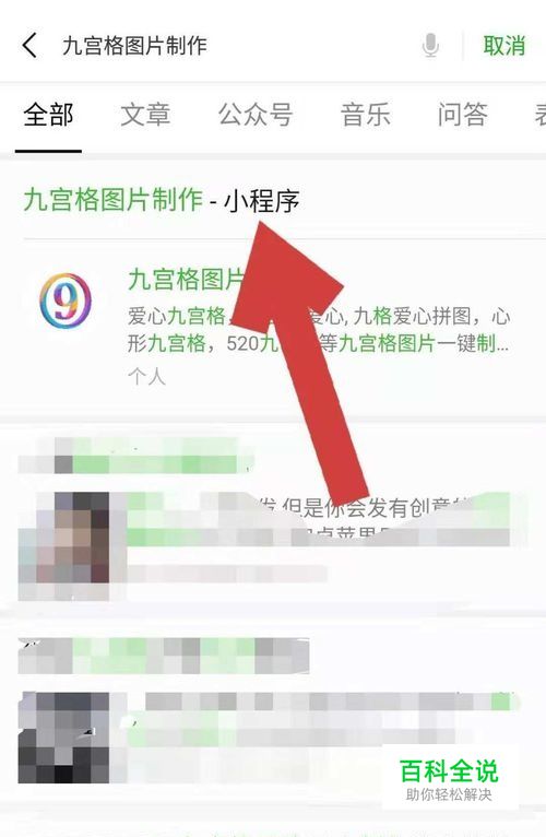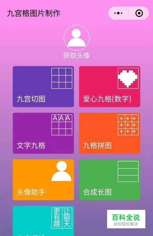 搜到小程序后,点击小程序名称,进入九宫格图片制作页面。如果之前我们使用过该小程序,也可在微信发现页的小程序中找到。