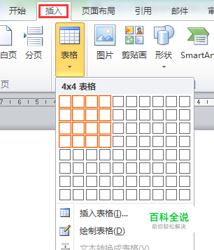 按要求的行数和列数插入一个普通表格(以4行4列为例)。