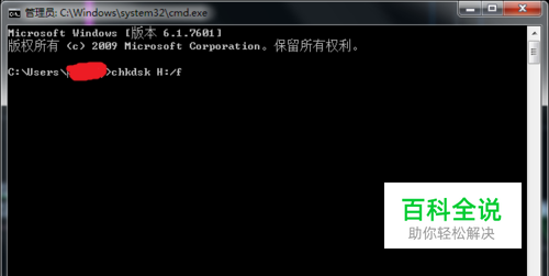 开始菜单点击运行,输入cmd,出现一个程序窗口(或以管理员身份运行命令提示符),再输入chkdsk(空格)X:/f,点击回车,等程序自己修复(X为你的硬盘盘符,如H盘则输入“chkdsk H:/f”后回车即可)