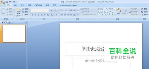 然后点击空白处添加第一张幻灯片,此时系统就会默认一种格式出来
