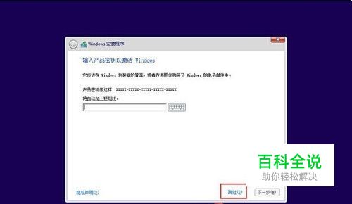 4.在弹出的产品密匙激活Windows窗口中,点击“跳过(S)”按钮。如下图所示